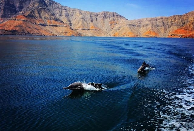 As the dhow glided through the crystal-clear waters, they marveled at the dramatic limestone cliffs—often called the “Norway of Arabia.” Friendly dolphins playfully swam alongside the boat, adding a touch of excitement to their journey. They enjoyed fresh fruits and traditional Omani coffee while reclining on comfortable cushions, soaking in the natural beauty.
