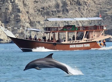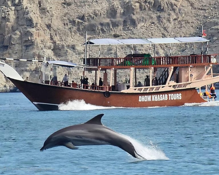 When you enter the fjords there is a possibility to see the dolphins, and our trained captain will manoeuvre the dhow to get you as close as to see the dolphins. Experience the speed, elegance, and strength of dolphins in the tranquil waters of the fjords, as they swim alongside your traditional dhow.